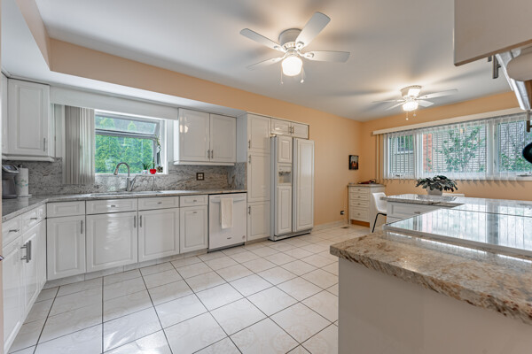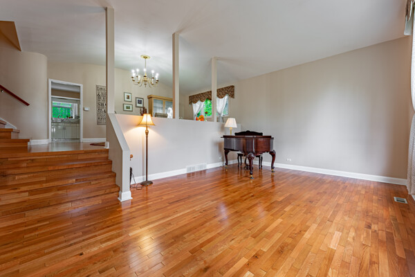 Welcome to this spacious, and beautifully maintained home with a versatile floor plan in the highly sought-after School District 23. With 4 bedrooms and 3.5 bathrooms, this home is perfect for any buyer looking for ample space and functionality. Step inside and be greeted by the grand foyer and inviting living room, featuring volume ceilings and stunning hardwood floors that flow seamlessly throughout the main and upper levels. The kitchen is a cooks delight, with granite countertops, a stylish backsplash, a sunny garden window and a breakfast nook. The adjacent family room is ideal for gatherings, featuring a custom built-in display cabinet and TV, creating the perfect entertainment space for family and friends. Off the family room is the three-season room, providing a serene atmosphere and so many options for play or work. It also offers easy access to the deck and the fenced yard. Retreat to the primary suite, complete with a separate shower and a full tub, creating a relaxing sanctuary to unwind after a long day. The other three bedrooms are generous in size, and all have ample closet and storage space. The basement offers even more space, complete with an office and a full bathroom, providing the perfect spot for work or relaxation. Top-rated John Hersey High School ranked #13 in Illinois is a short walk. Nearby Patriots Park offers additional opportunities for recreation, with its walking/bike paths and playground. Don't miss out on the opportunity to make this beautifully appointed home yours. Schedule this easy to view showing today and experience everything this home has to offer!