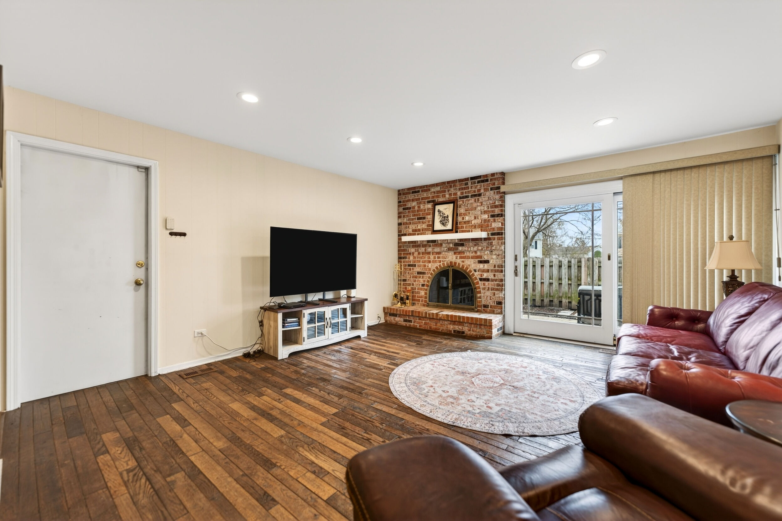 a classic brick fireplace. A finished basement adds flexible living space for a home office, gym, or additional living area. Andersen windows and doors,